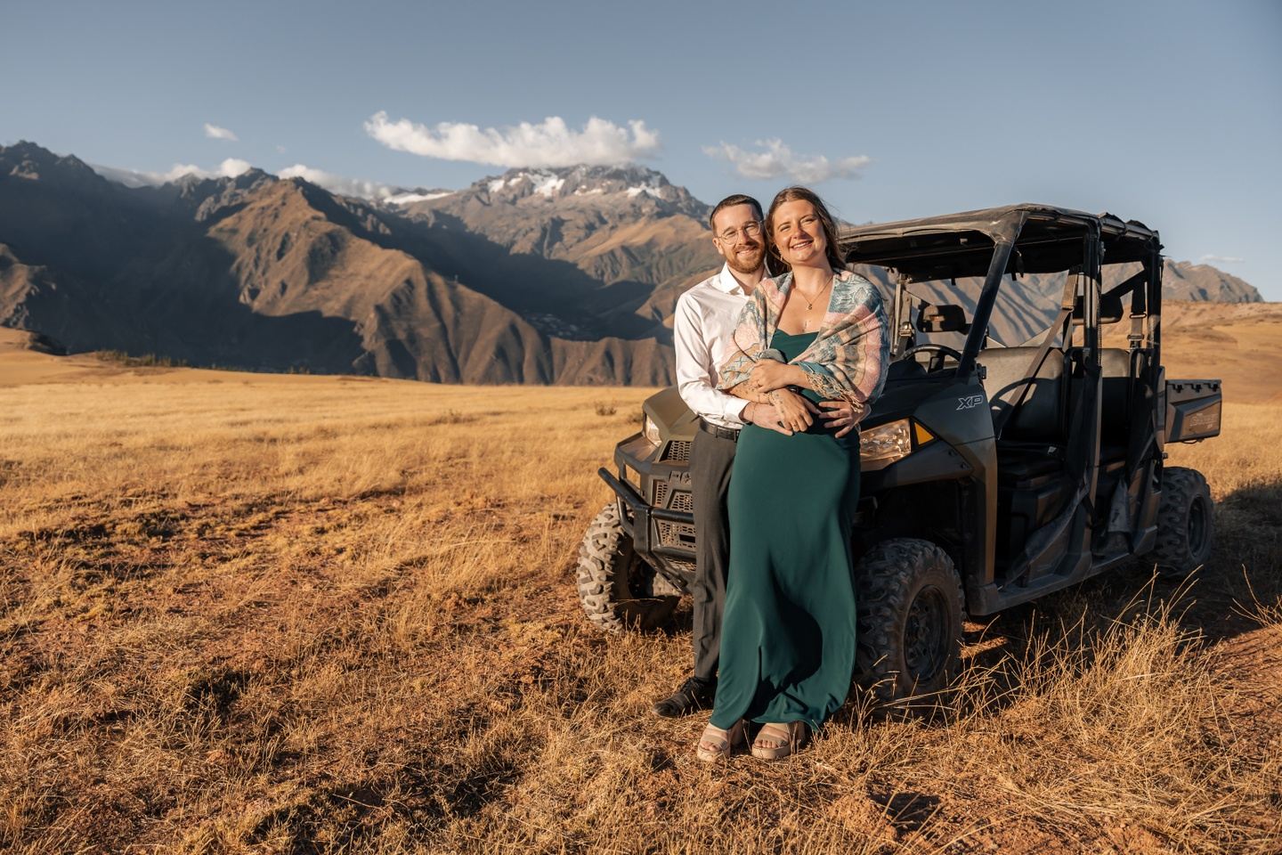 Begin your afternoon under the pretense of a casual couple’s photoshoot with friendly llamas and sweeping mountain views. Your photographer will guide you naturally through the session, then suggest moving to a nearby location for some “sunset shots.” Together, you’ll hop into the jeep and ride toward a remote mountain viewpoint, where the real surprise awaits. As the sun sets over the peaks, it’s your perfect moment to drop to one knee against the breathtaking Andean backdrop. This option pairs beautifully with a morning Sacred Valley tour, creating a full-day experience filled with beauty, connection, and excitement. (Photography upgrade required for this option.)